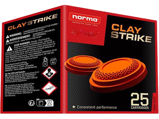 Hit the range with confidence with Norma Claystrike Ammunition, designed specifically to excel in the fast-paced world of sport shooting. This sporting shotshell boasts a unique blend of high-performance features tailored to maximize fast-paced competition. Claystrike utilizes a tightly controlled shot pattern formed by a proprietary blend of premium shot. This ensures a dense cloud of pellets at mid-range, perfect for shattering clays across the field’s diverse throwing angles. Claystrike also incorporates a buffer system designed into the wadding that helps reduce recoil, allowing for quicker follow-up shots and smoother overall handling. This combination of tight patterning and reduced recoil enables you to focus on acquiring your target and executing clean, decisive shots when it counts, ultimately elevating your sport shooting experience.